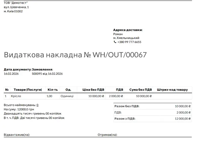 Доставляєте товар клієнту? Не забудьте роздрукуйте з документу відгрузки в Odoo видаткову накладну.