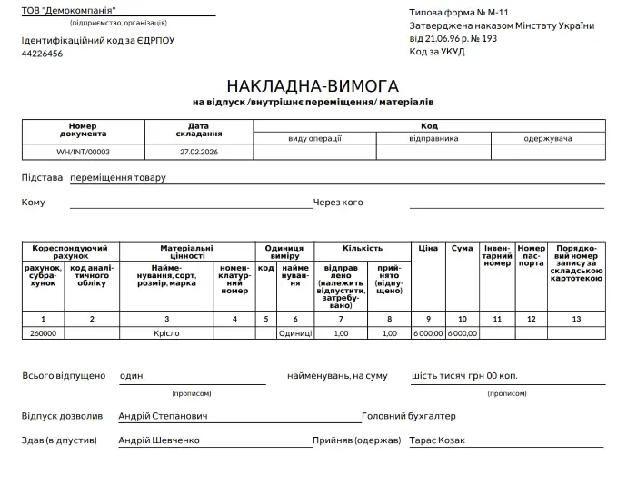 Накладна вимога (М-11)